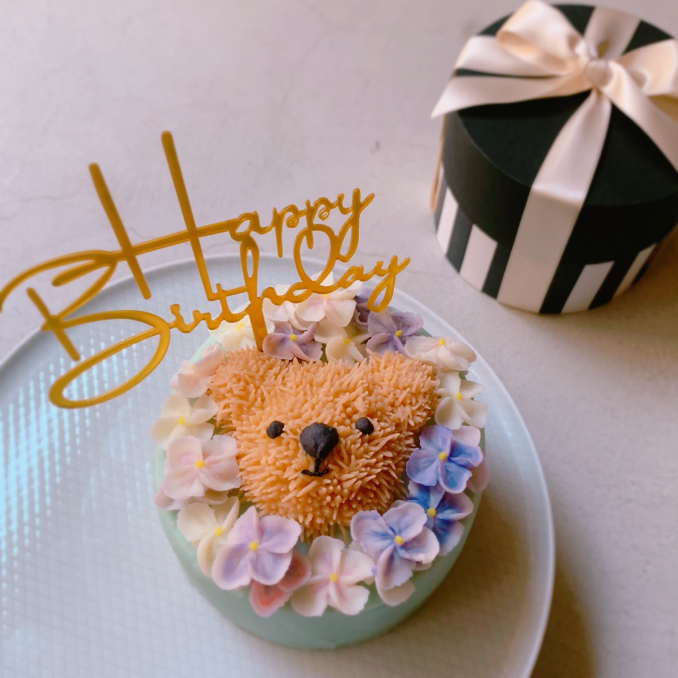 白あんのくまと紫陽花のお花でデコレーションしたとっても可愛いケーキです。